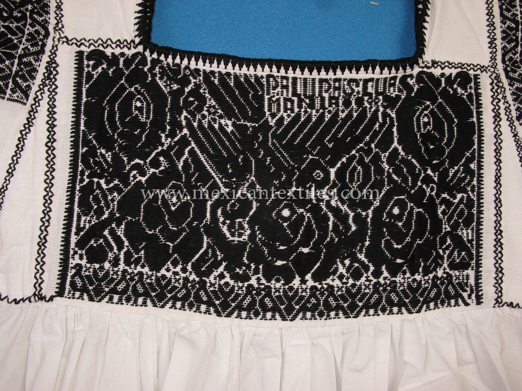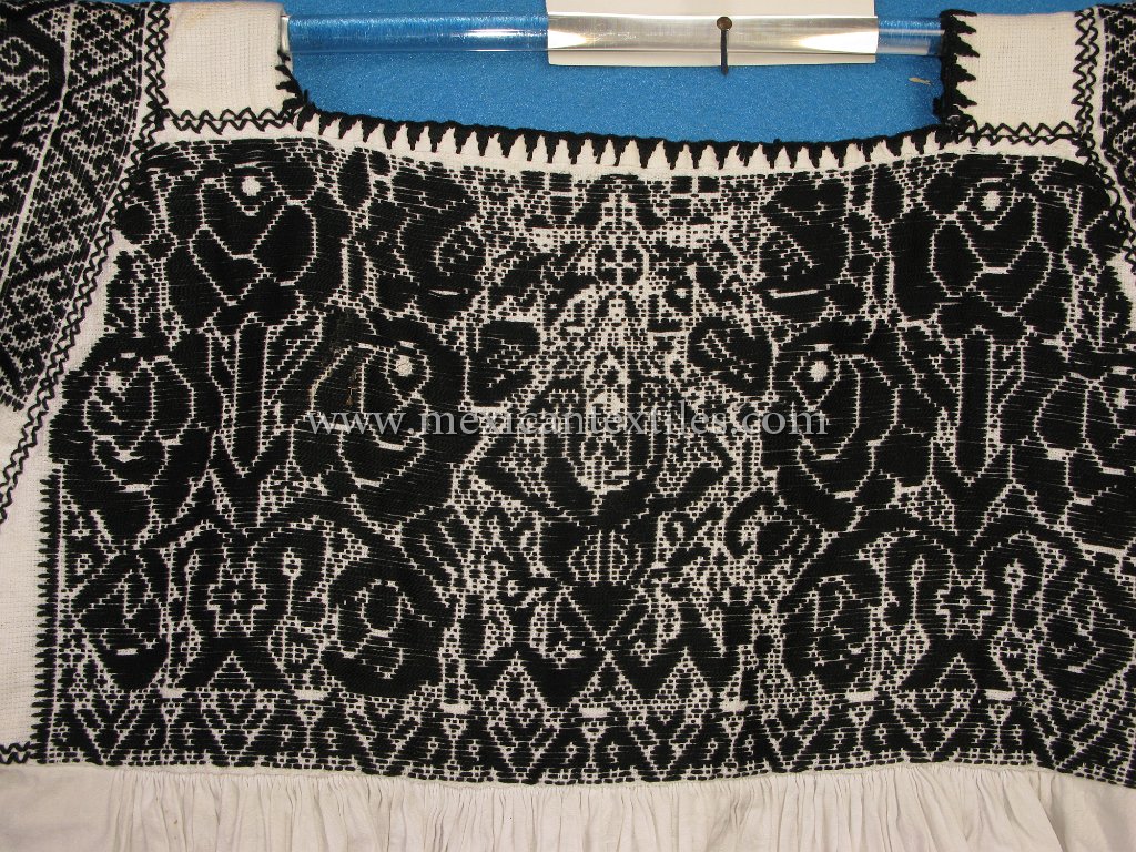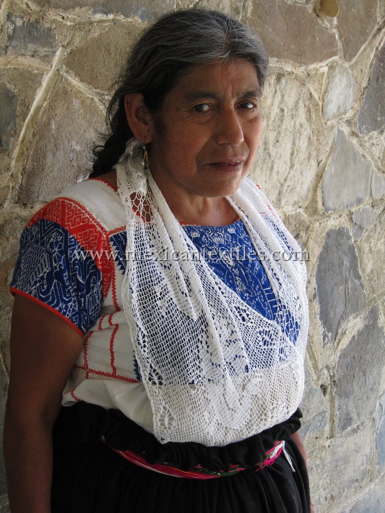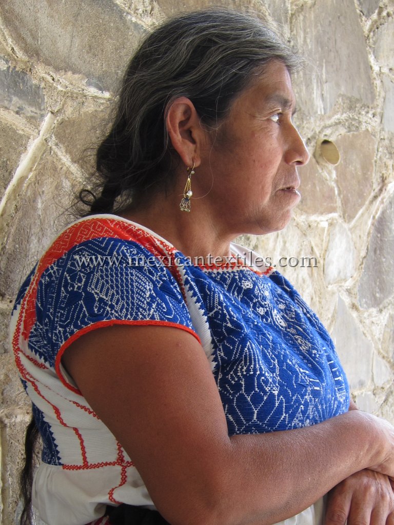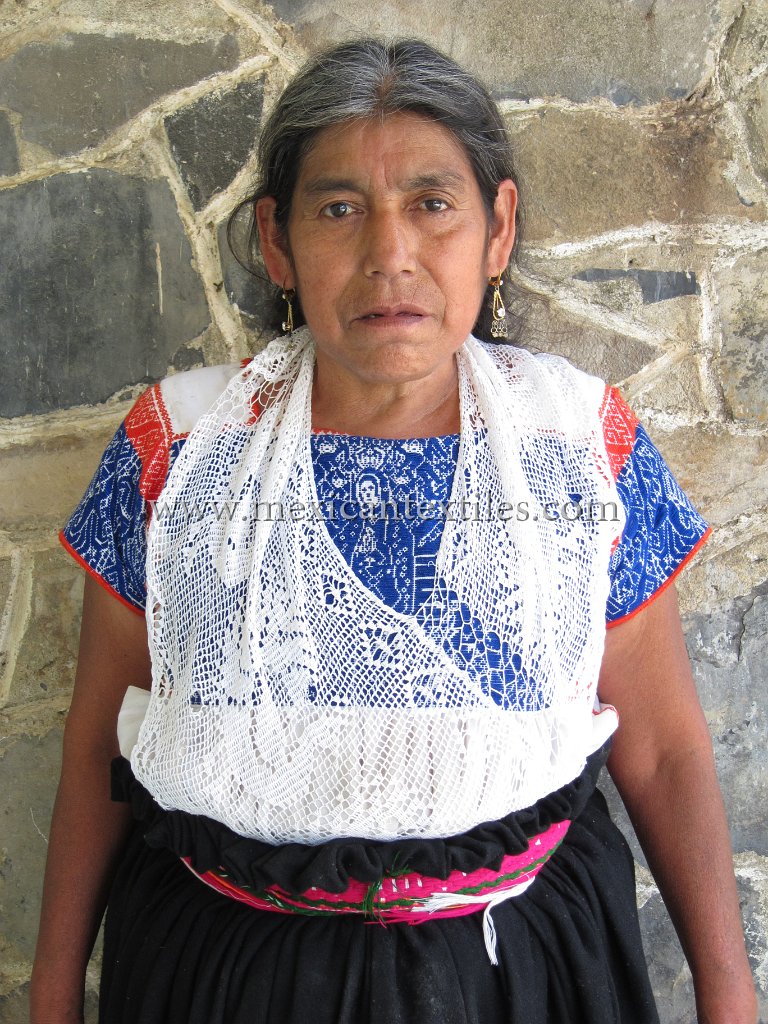 Venta Grande Huauchinango Puebla Nahua Nahuatl hand embroidered blouse www.mexicantextiles.com quechquemitl Mexico indigenous textiles backstap woven belt Xaltepec