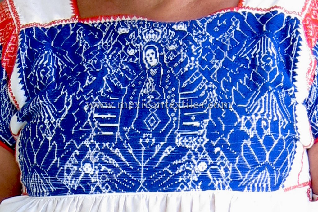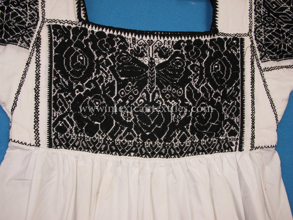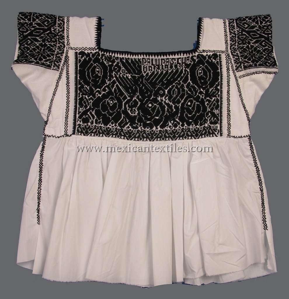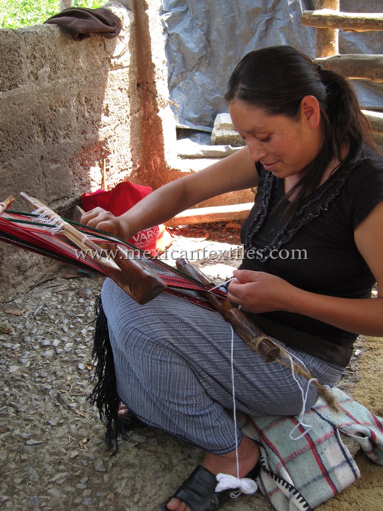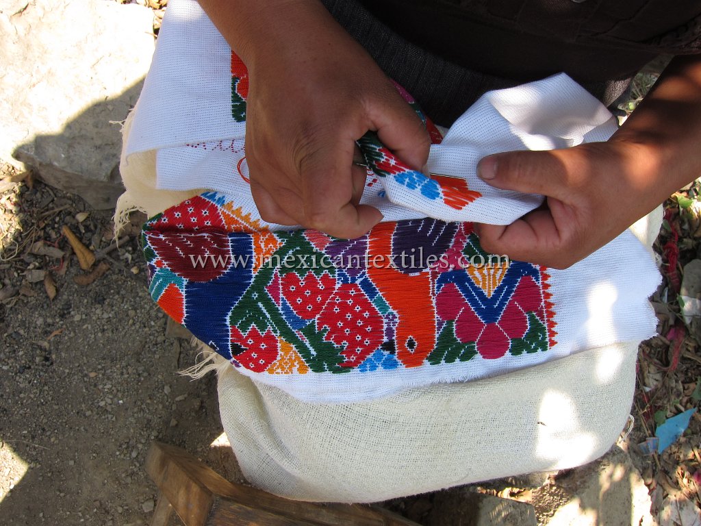 Venta Grande Huauchinango Puebla Nahua Nahuatl hand embroidered blouse www.mexicantextiles.com quechquemitl Mexico indigenous textiles backstap woven belt Xaltepec