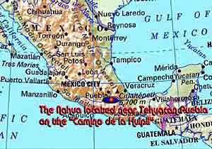 The Tehuacán Valley begins 150 km SE of Mexico City and extends for 100 km through southern Puebla State to the Oaxaca border. This wide rift valley of cactus-studded, rolling plains has been home to indigenous people for at least 12,000 years. The mountains of the Sierra de Zapotitlán border the valley on the west. To the east, the Sierra Negra (also called the Sierra de Zongolica) creates a rain shadow that gives the valley its arid, hot climate. The first human inhabitants of the valley were wandering hunters and gatherers. About 1,000 years ago the Chocho-Popoloca speaking people who controlled the valley began to be pushed south by Náhuatl speaking migrants from central Mexico. The valley was incorporated into the Aztec Empire shortly before the Spanish conquest of Mexico. Today, over 200,000 indigenous people belonging to several ethnic groups live in the valley. Most are Nahuas, speakers of various dialects of Náhuatl, the most widely spoken indigenous language in Mexico. During the 1960's archaeologists conducted an extensive survey of the valley, locating more than 500 early habitation sites. Many sites contained evidence of farming dating back almost 6,000 years. Beans, chiles, gourds, squashes, avocados, cassava, guavas, and 15 races of maize were among the crops grown by these ancient agriculturalists. Indigenous people have irrigated the dry lands of the valley for the past 2,000 years. Today, the valley's land is irrigated and farmed intensively, but not by Nahua subsistence farmers. Rather, agri-business companies grow cash crops like sugarcane. They also raise vast numbers of goats and chickens. In 1962-63 the Cordrys visited Nahua communities in the valley and documented the clothing worn by local men and women in Miahuatlán, Zinacatepec, and Altepexi. The Cordrys noted that traditional male costumes were virtually extinct. Only the oldest women still wore huipils; blouse styles were changing; and women and girls were also abandoning traditional dress. But, the production of clothing continued in the valley. One Nahua town, San Gabriel Chilac, has had a thriving business making blouses and dresses embroidered with colorful flowers. These are sold to dealers who resell them in many regions of Mexico from Veracruz to Oaxaca to Mexico City. Today, however, textile production takes place on a giant scale. Over 300 clothing assembly plants (called maquiladoras in Spanish) are located in or near the city of Tehuacán. These "maquilas" turn out about 5 million pairs of jeans per month for the US market. Over 35,000 people are engaged in the production of jeans. Most -- around 80% -- are indigenous people ( Nahuas, Mazatecs, Mixtecs, and Popolocas). The Tehuacán Valley was once known throughout Mexico for its pure water. Now, water in the valley is contaminated by run-off from washing the maquila blue jeans and also from intensive agriculture and animal husbandry. Mexico's federal highway 131 once connected the rural Nahua towns of the valley in a route called the "camino de la huipil" which led from the central Mexican plateau to the largely indigenous states of Oaxaca and Chiapas. Few huipils can be found in the valley today. Local residents now call Tehuacán "Maquilatitlán," the place of the "maquilas." Nahua women and men have abandoned traditional dress for tee shirts and the blue jeans the maquilas pay them a few dollars a month to manufacture.