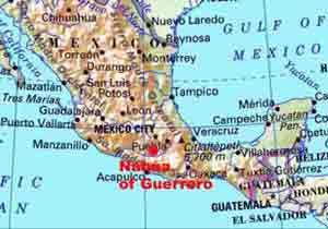 On this page, the focus is on the villages of the Chilapa region. With regard to language, Nahua is the most widely spoken indigenous language in Mexico, in conversations with the people shown in this section they understand and can communicate with the peoples of the Mountain region. The Mountain region centered near and around the towns Tlapa and Chilapa is the most densely populated of the Nahua regions. These regions are in contact with other indigenous groups, the Mixtec, Tlapaneco and Amusgo. Guerrero is one on the poorest state in Mexico and the indigenous population as usual in Mexico is at the very bottom of the economic ladder. Electrification and portable water are recent developments in the region. Road building got a push in the 1970's when dirt roads where cut to many villages and now paving is just now getting under way. The Rio Balsas ( Balsas River is one of the largest river systems in Mexico ( 450 miles) and large government projects have dammed the river along its long trajectory. The Nahua population of Guerrero is about 350000 based on the 1990 census the actual population in the Rio Balsas area approximately 50000. The villages of the Rio Balsas region have a extensive handicrafts, the painting on amate paper, mask making, pottery and decorative wood working are known all over Mexico. The Nahua of Guerrero migrated to the area in pre-Hispanic times because of problems in the areas of Morelos and Mexico's central valley. Codices from the period suggest that the migration originated from Xochimilco, Toluca and the southeastern areas of the Mexican central plateau. These migrations were followed my military excursion and conquest. The Nahua of today are located in five basic areas, the mountain, central Sierra, Upper Balsas River, Northern Sierra and Tierra Caliente (hot lands). The Nahua indigenous neighbors include the Tlapanecos and Mixtecos in the mountain region |