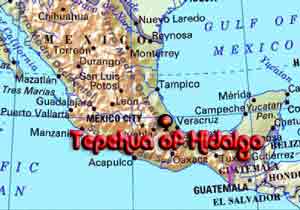 The communities that are included in this gallery are all very close to Huehuetla, in fact they are neighborhoods in reality. The town has grown into them. The carnival ( Mardi Gras) is a week long event which is distinct to the surrounding Otomi celebration and culminates with a fire dance. The town did a census of women still wearing traditional costume and in 2005 there were 80 women left. The old belt weaver has hurt her back and no longer weaver and Maria Cresencia the last quechquemitl weaver still weaves. there will be a seperate video and phot gallery of the Quechquemitl process in the near future. Bob Freund The Tepehua ("teh-PAY-wa") people are often confused with the Tepehuan ethnic group of northern Mexico. However, the Tepehua people live in central Mexico and are closely related linguistically to their neighbors, the Totonacs. Totonac and Tepehua together form the Totonac-Tepehua language family. The Tepehua occupy a long, narrow territory on the eastern slopes of the Sierra Madre Oriental from the Mecapalapa area of Puebla to several municipios in far northwesternVeracruz. The three major Tepehua population centers are Tlachichilco, Veracruz and the towns of Pisa Flores and Huehuetla in Hidalgo. The three major dialects of the Tepehua language correspond with these communities. In their own language, the Tepehua call themselves "Hamaispini" ("Dueños del Cerro" in Spanish). The 1990 Mexico census identified approximately 8,700 people age five and older who spoke Tepehua. In terms of culture and religion, the Tepehua share many traits with their eastern neighbors, the Totonacs, and with their neighbors to the west, the Otomis and the Nahuas. This includes the use of paper spirit figures in shamanism and the "voladores" pole ceremony. The Tepehua are, in general, peasant agriculturalists. They occupy a tropical region rich in rivers, streams, and abundant rainfall. Families grow the traditional subsistence foods of maize, squash, beans, and chiles, along with coffee and sugar cane. Some farmers cultivate other crops, too, such as onions, sweet potatoes, sesame, and lentils. Most families keep domestic animals and fowl, and supplement their food supplies by fishing and hunting. Tepehua men, like indigenous men throughout Mexico, often leave home for wage labor elsewhere, and some families earn income through the production of crafts such as baskets, ceramics, and textiles. The traditional costume of Tepehua men is similar to that found among the Totonacs and Nahuas of the Sierra Madre Oriental - a white, long-sleeved shirt, ankle-length white pants, sandals, a shoulder bag, machete, and a straw hat. The traditional woman's costume consists of a short-sleeved white blouse decorated with a combination of pepenado smocking and machine embroidery. This is worn tucked into a white tube skirt, which is traditionally 4 meters wide and is pleated in front of the woman's body. The hem of the skirt is decorated with a band of machine embroidered designs. Both skirt and blouse are made from commercial cloth. Women wear wide, black and white backstrap woven belts. A gauzy, white backstrap woven quechquemitl is also worn on the upper body (points in front and back) or wrapped "pirate style" around the woman's head. The Cordrys visited Huehuetla, Hidalgo in 1965 and described and photographed the unique process used by Tepehua women to make their quechquemitls (called "quexquen") locally. After the two pieces of cloth that make up the quexquen are woven, they are washed thoroughly; then folded so that the red or pink dyed bands of brocade come in contact with plain, white cloth. The folded fabric is wrapped in a large leaf, placed on a clay comal (used to cook tortillas), and steamed for about 10 minutes. Some women place a half-gourd on top of the leaf-enclosed cloth while it steams; others do not. It's been suggested that this process has to do with female fertility. In any case, the washing, folding, and streaming results in the stamping of the white parts of the quexquen with fugitive designs in a red or rose color. Stamping designs on plain fabric by folding and pressing dyed areas to undyed areas is a technique still found today in some Mixtec communities in Oaxaca, notably Santiago Ixtayutla. The points of the quexquen are embroidered with "tree of life" designs, and the two pieces of fabric are joined together with a wide satin ribbon. |